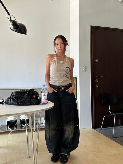 梨形天菜 弧形牛仔褲